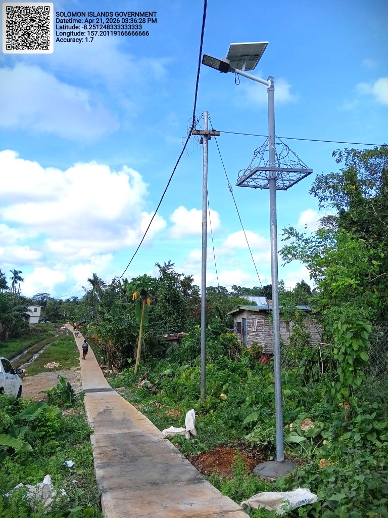 In addition to the main installation sites, several completed community footpaths are also benefiting from the solar lighting, including Small Baru Koquporo, Big Baru, Black Town, Mobil, and the Munda Market seawall and jetty.