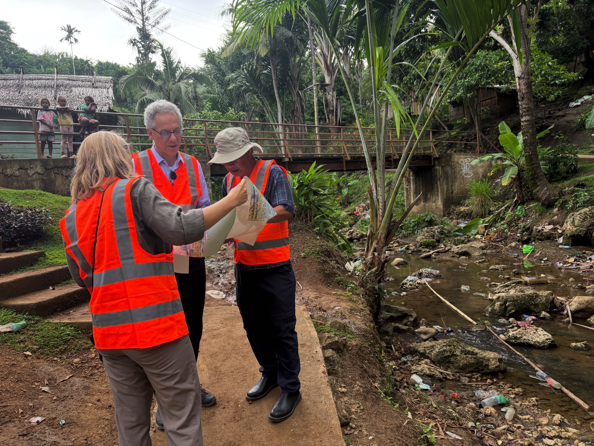 Accompanied by representatives from the CAUSE II Project Management Unit, Mr. Fraeters visited ongoing and completed works in West Kola’a Valley, including drainage improvements, footpath rehabilitation, and solar lighting installations that form part of CAUSE II’s efforts to create safer, more accessible, and climate-resilient communities.